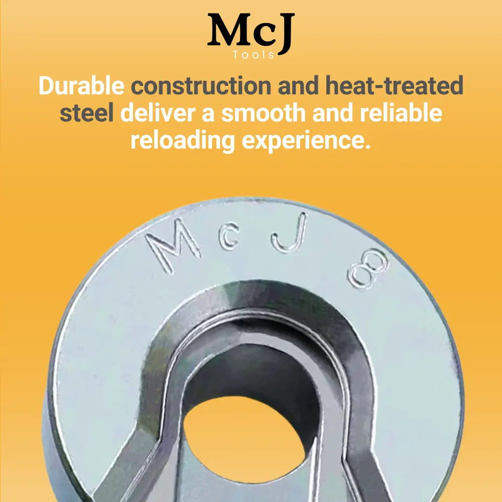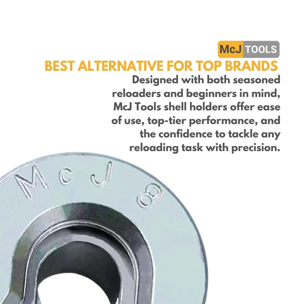 Improve your reloading efficiency with the McJ Tools Shell Holders #8 – 6-Pack. Crafted for precision and durability, these steel shell holders securely grip your brass cases, ensuring consistent alignment during every reloading session.